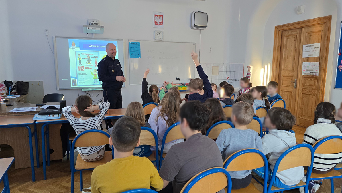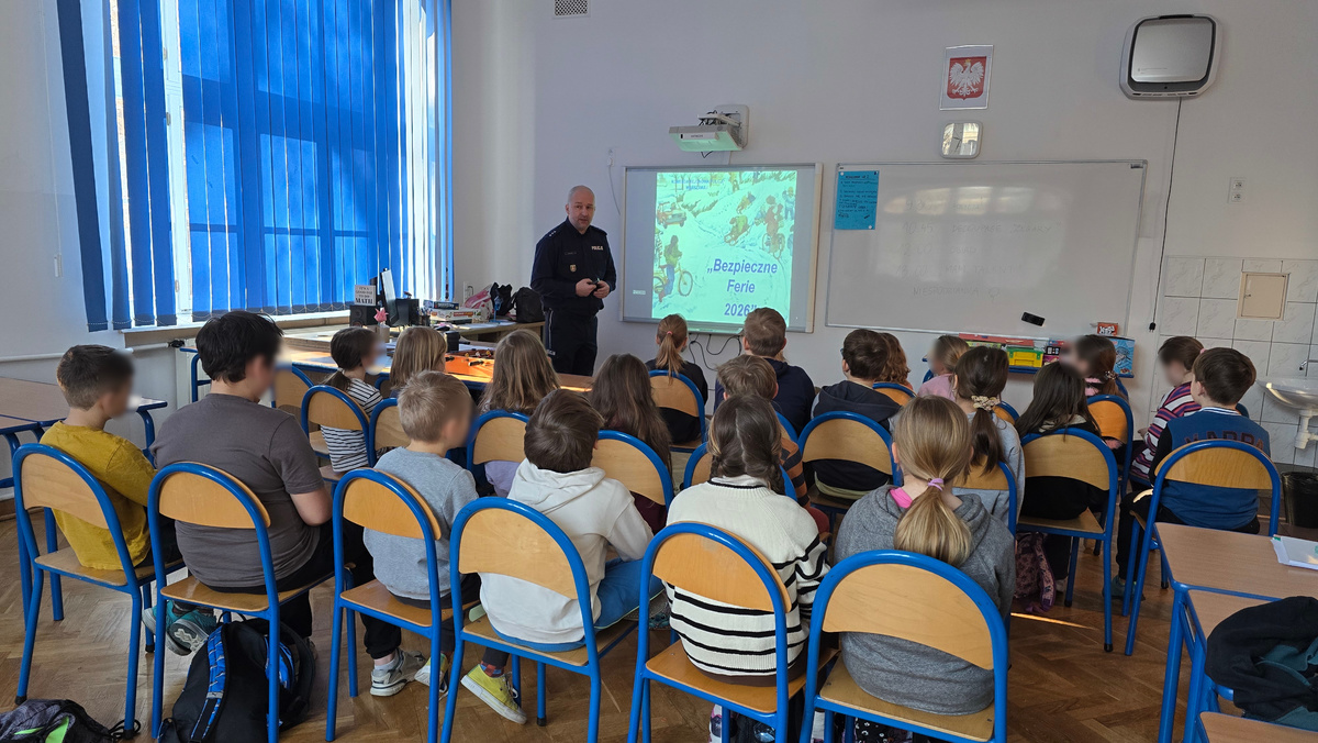 Komisarz Adam Ziemba każdego dnia spotyka się z najmłodszymi w szkołach tak, by wszystkie dzieci znały bezpieczne zasady spędzania ferii zimowych i dokonywały zawsze właściwych wyborów. W trakcie spotkanie profilaktyk odtworzył film z informacjami dotyczącymi zagrożeń związanych z zamarzniętymi zbiornikami wodnymi. Spotkanie było bardzo interesujące, a uczniowie mieli wiele pytań do policjanta.