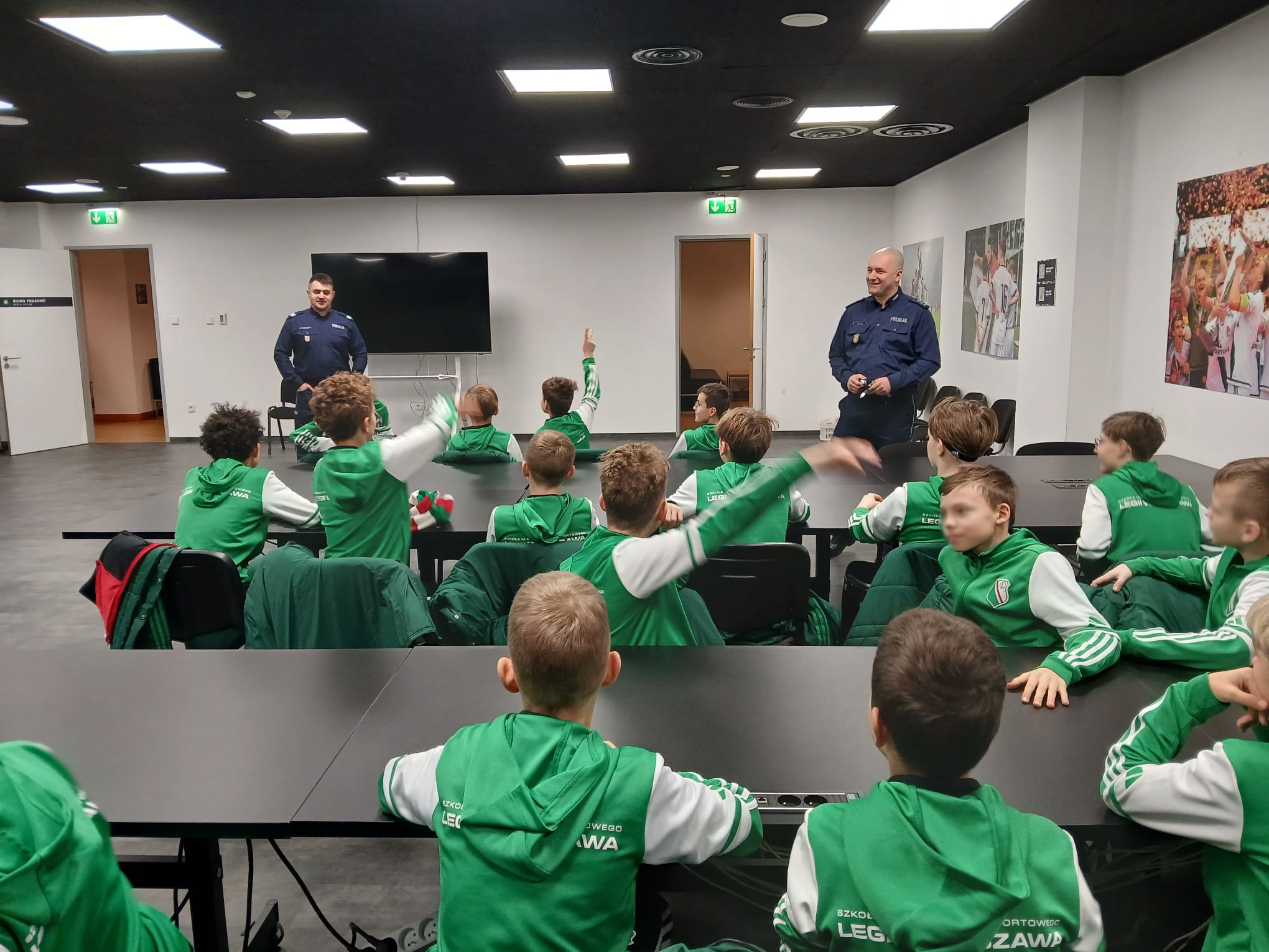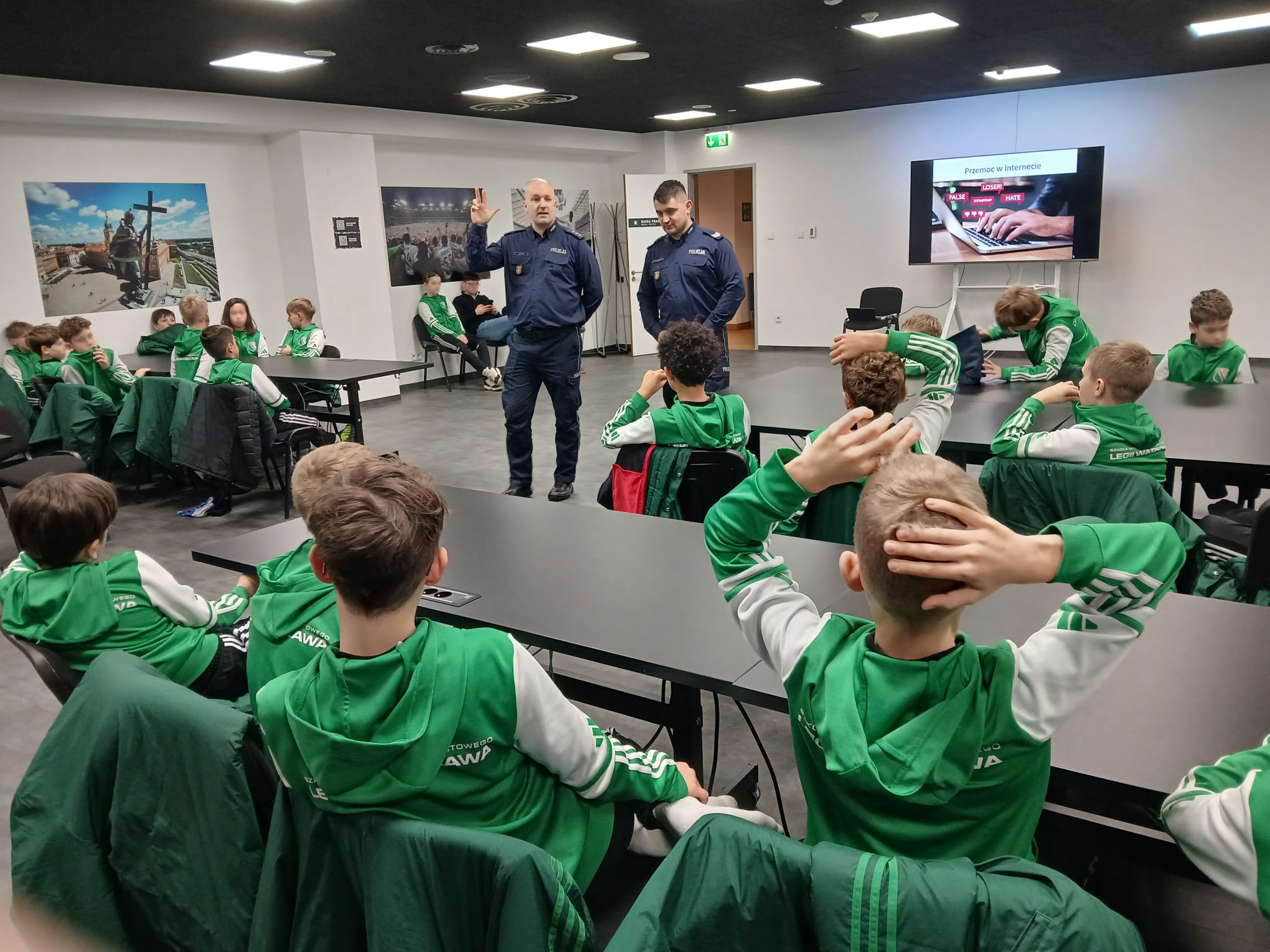 Policjanci ze Śródmieścia spotkali się z młodymi zawodnikami Legii Warszawa, aby porozmawiać o bezpieczeństwie, odpowiedzialności prawnej nieletnich oraz zagrożeniach, z jakimi mogą zetknąć w świecie realnym, jak i w przestrzeni internetowej.